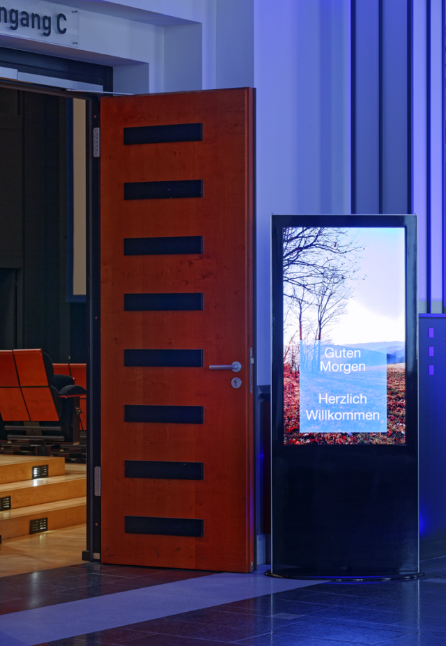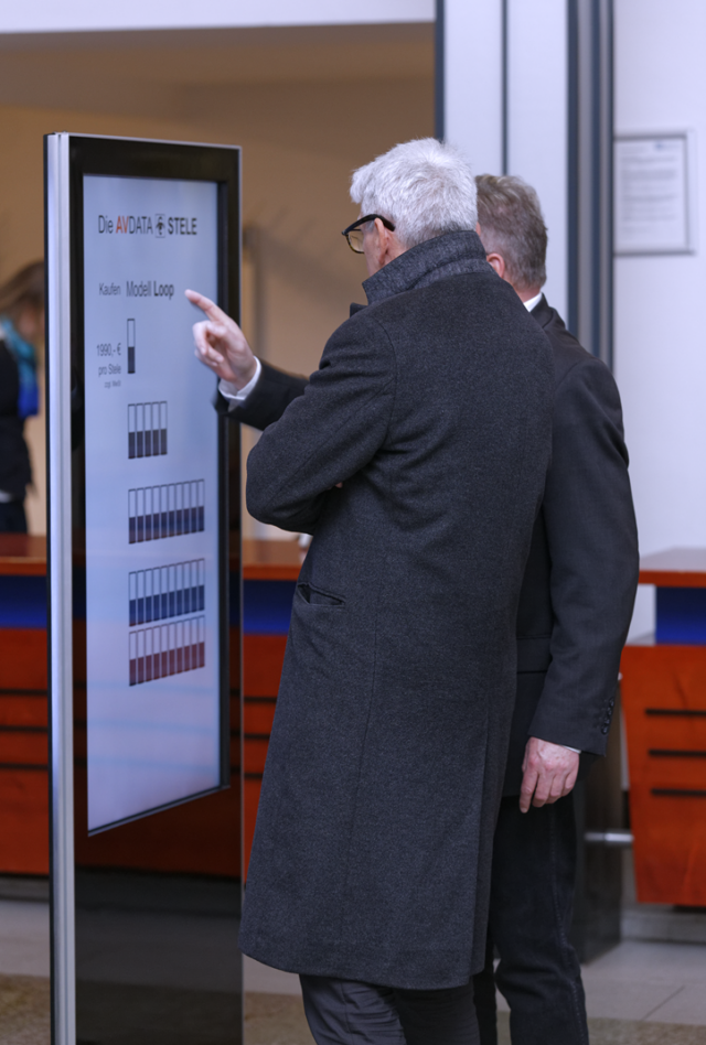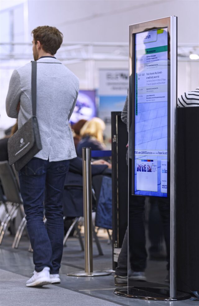 Es gibt verschiedene Anwendungsmöglichkeiten. Auf Messen als Werbetafel oder als Aussteller um Produkte zu Präsentieren. Bei Kongressen als Besucherleitsystem oder zur Darstellung des Programmplans. Die Medienstele kann interaktiv genutzt werden. Genauso als Digital Signage Anzeigegerät. Mit der Info-Stele kann kreativ gearbeitet werden.